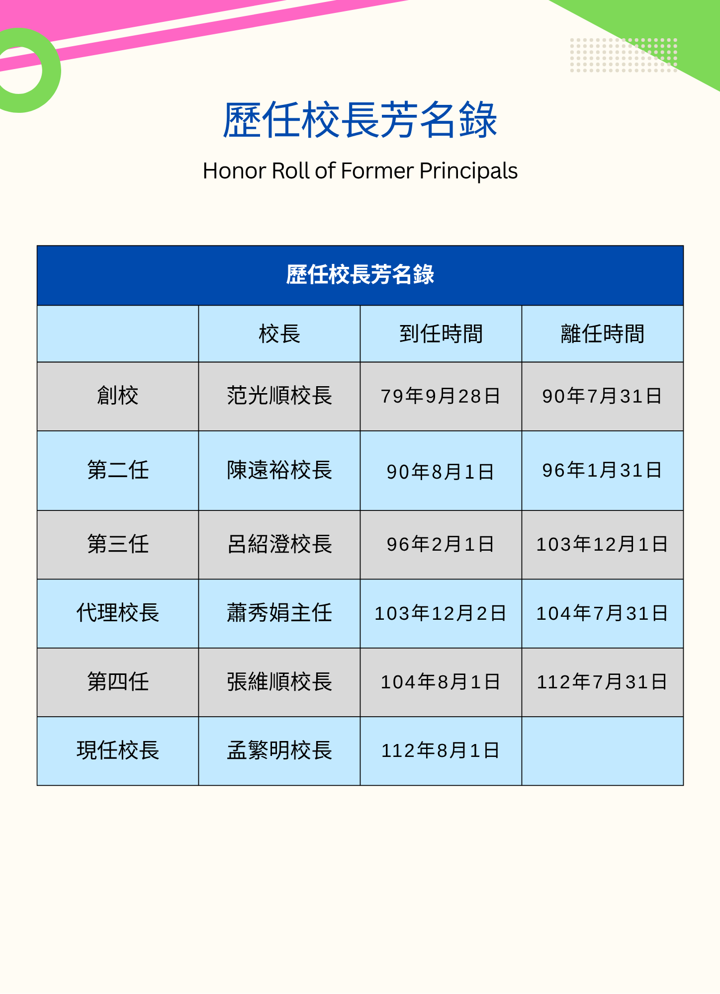 歷任校長